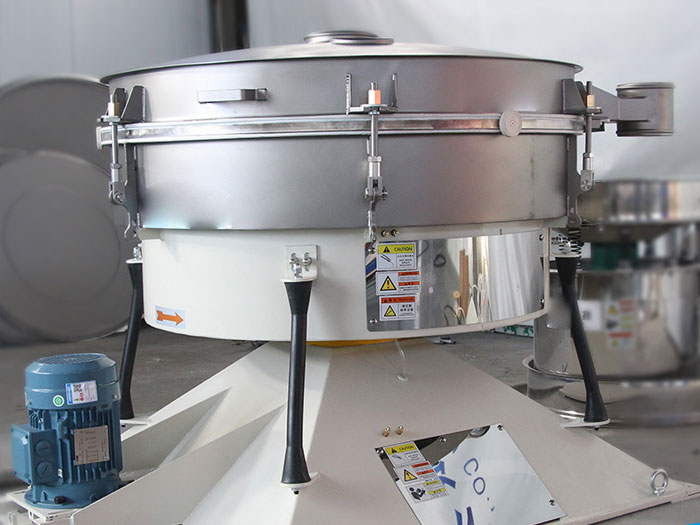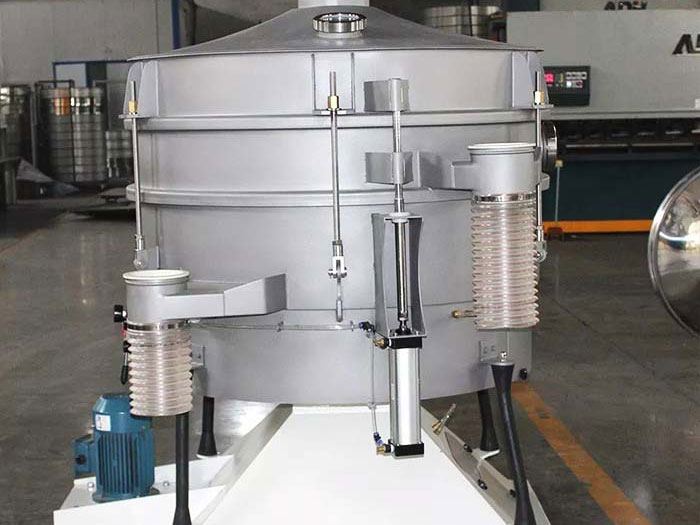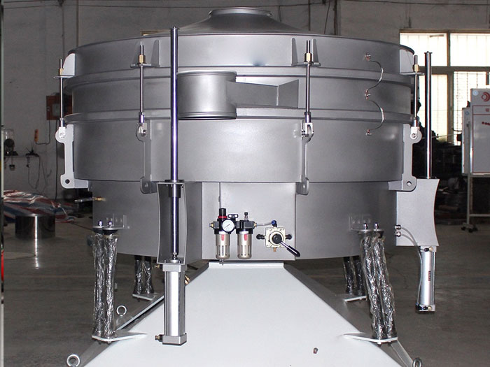 看細節(jié):進料口 出料口 篩網(wǎng) 振動電機 橡膠拉簧 氣動升降裝置