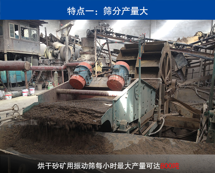 烘干砂屬于礦用行業物料,一般來說篩分烘干砂的都是大型作業,對于篩分產量要求大、篩分質量要求好、篩分環境要求高,所以推薦您使用礦用振動篩,對烘干砂進行篩分。下面小編就根據這三個方面來為您介紹一下烘干砂礦用振動篩: