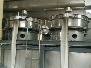 超聲波振動篩電源產生的高頻電通過換能器轉換成高頻正弦形式的縱向振蕩波,這些振蕩波傳到共振器上使共振器產生共振,然后由共振器將振動均勻地傳輸至篩面。篩網上的物料在做低頻三次元振動的同時,疊加上超聲波振動,既可以防止網孔堵塞,又可以提高篩分產量與精度。